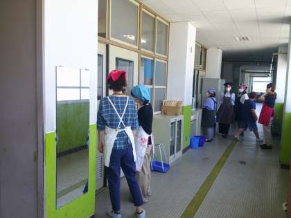 初めに、学校給食や食についてのお話を聞いていただき、次に給食時間の様子を参観していただきました。その後、実際に小学校給食を試食していただきました。