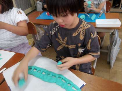 図画工作科でねんどを使って作品を作りました。