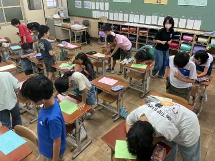 同じ学級の仲間へ必死にメッセージを書こうとする姿はとても素敵でした。