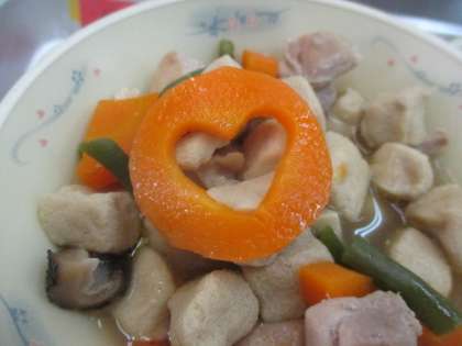 「こうやどうふとやさいのたきあわせ」は、だしがたっぷり染み込んだ高野豆腐と野菜の優しい味わいが楽しめます。高野豆腐は、体を強くする赤の食べ物の一つです。