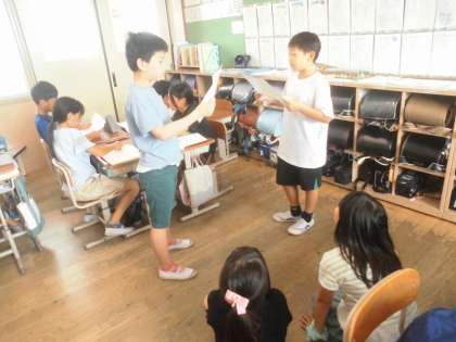 グループでどのように言ったらいいのかをグループで話合い、役割を決めて、やり取りをしました。次の時間は、よりよい言い方について考えたいと思います。