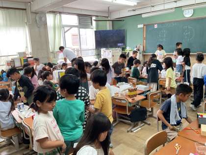 今日は途中で1組と2組で交流し、アイデアを交換し、また自分のおもちゃにいかしていました。