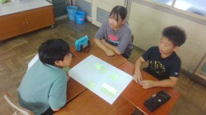 よりよい学校生活のためにの学習で、グループごとの話し合い活動をしました。前の時間に自分が考えた意見を付箋に書き、その付箋を画用紙に貼っていきながらみんなの意見をまとめる話し合いに挑戦しました。グループごとに出てきた意見を仲間分けしながら上手に意見をまとめる話し合いをすることができました。