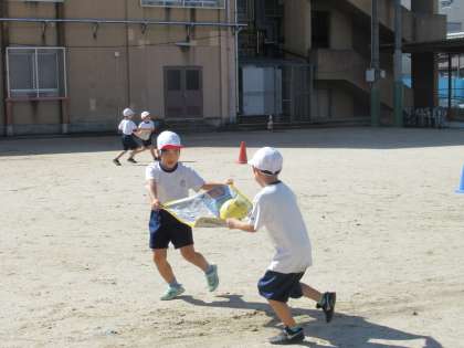 体育館のときより距離が長くなって、ボールや箱を落としてしまうペアが続出!