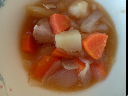 「鶏肉と野菜の煮つけ」は、鶏肉のうま味と野菜の甘みがだしにしっかりしみ込んだ一品です。にんじんやたまねぎ、こんにゃくなどの具材がやさしい味わいで、体も心もほっとする煮物です。