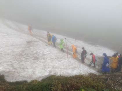 雪渓に,子どもたち『雪だ』と大興奮です。