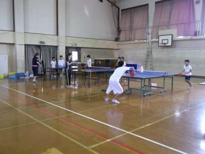 卓球部・和太鼓部とも一生懸命練習をしていました。球をはじく音,パーランクをたたく音が体育館に響いていました。