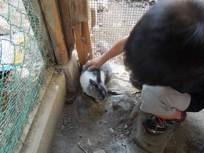 子どもたちは,いつもは入らない飼育小屋にわくわくしながら入り,うさぎをなでたり抱っこしたりと楽しそうにふれあっていました。