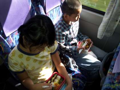 予定より,遅れているので,急きょ車中でお弁当を食べることになりました。