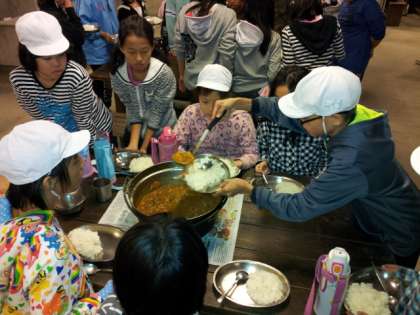 自分たちで作ったカレーは,おいしくていつもと一味違うようです。
