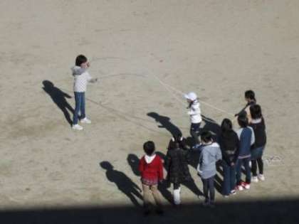 教室に残る児童が減り,元気よく大なわに取組み,女子も男子も一緒に楽しそうに跳んでいます。