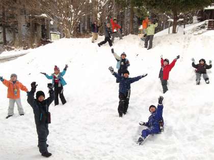 ロッジのすぐ裏にあるなだらかな斜面で,