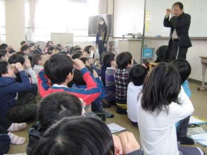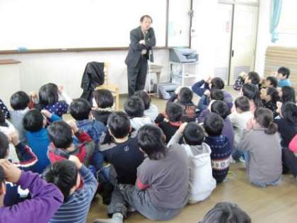今日の3.4時間目の総合学習の時間に、1月の末にも来ていただいたのですが、ゲストティーチャーとして松永信也さんに来ていただきました。