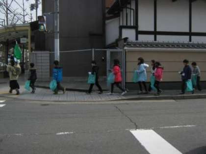 今日は、「梅小路いきいき学習」の取組で,4年生のみんなが地域の清掃活動に行きました。