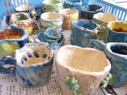土曜学習で子どもたちが作った「マグカップ」が