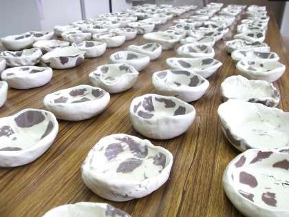親子陶芸教室で取り組んだ「もようのあるお皿」と
