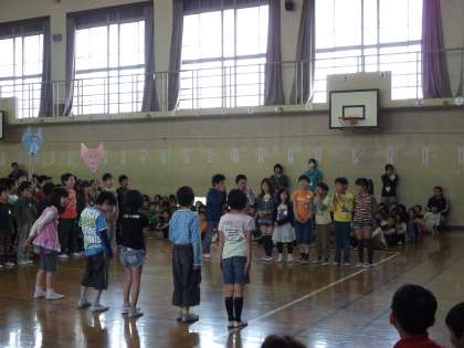 1年生を迎える会があり,「ともだちや」の寸劇をしました。