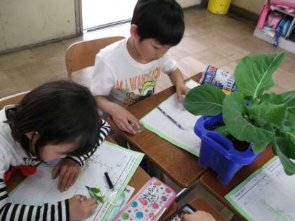 キャベツ,ブロッコリーなどの葉っぱの観察をし,