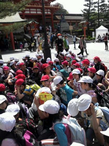晴れ晴れしている青空のもと、3年生は稲荷山に遠足に出かけています。