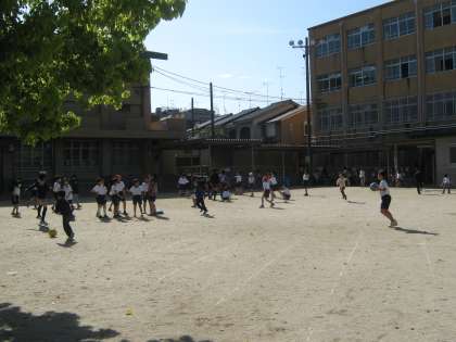 朝休みの運動場を見ると,たくさんの子どもたちが明るく元気な声を響き渡らせながら走り回って遊んでいました。