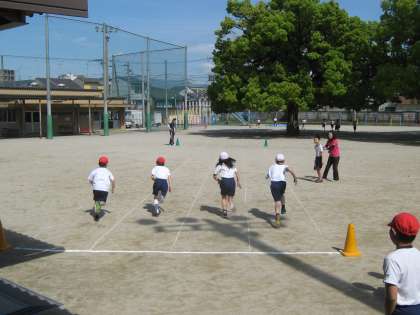 5年生の子どもたちは,できるだけタイムを縮めようと,一生懸命に走っていました。