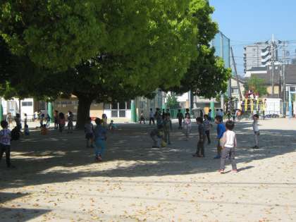 朝から元気な子どもたちが多く,運動場で友達と遊んでいます。