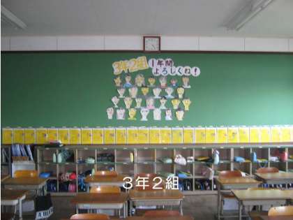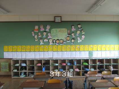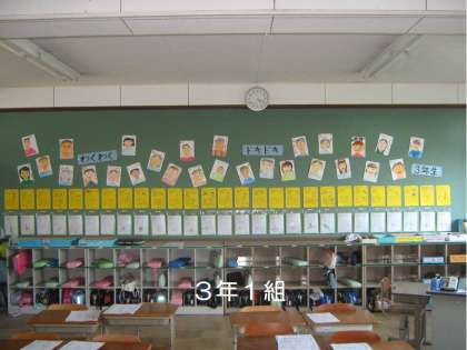 3年生の教室も,子どもたちの似顔絵と自己紹介カードが掲示されています。
