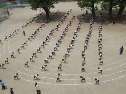 暑さを感じるよく晴れたいいお天気の中で,子どもたちは一生懸命に友だちとタイミングが合うように練習をしていました。