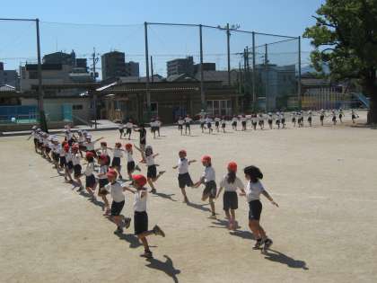5時間目に運動場で運動会の団体演技『EVERYDAY DANCING!』の練習をしました。
