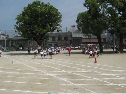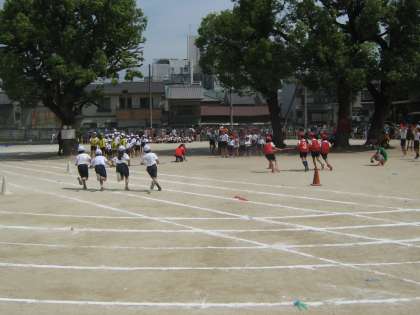 4人で竹の棒を持って,2つのコーンを上手に回るのはなかなか難しく,子どもたちは苦労していました。でも,とっても楽しい競技でした。