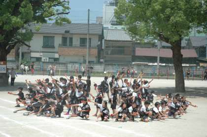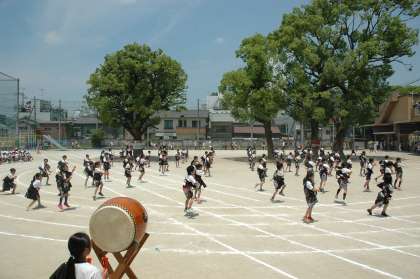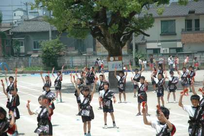 4年生の子どもたちは,かっこいいはっぴを身をまとい,心地よい響きのなるこを響かせて,元気いっぱいに踊っていました。