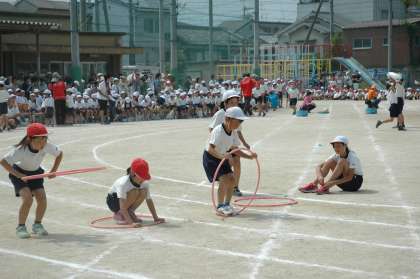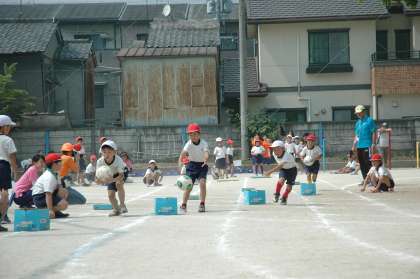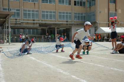 ボールを運んだり,ループを抜けたり,ネットをくぐったりと大変でしたが,3年生の子ともたちは全員が,楽しそうに走っていました。