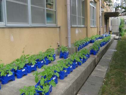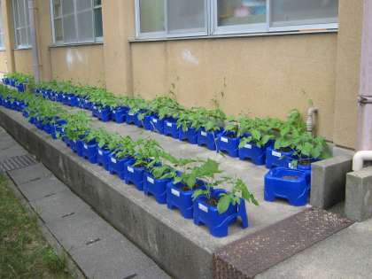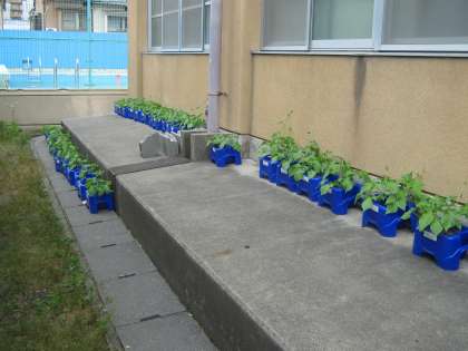 先日,芽が出て,双葉になったところででしたが,子どもたちが毎朝水やりをして,一生懸命育てた結果,今ではかなり大きくなりました。