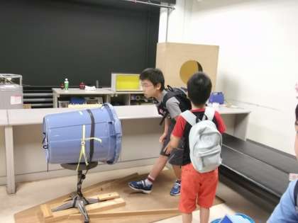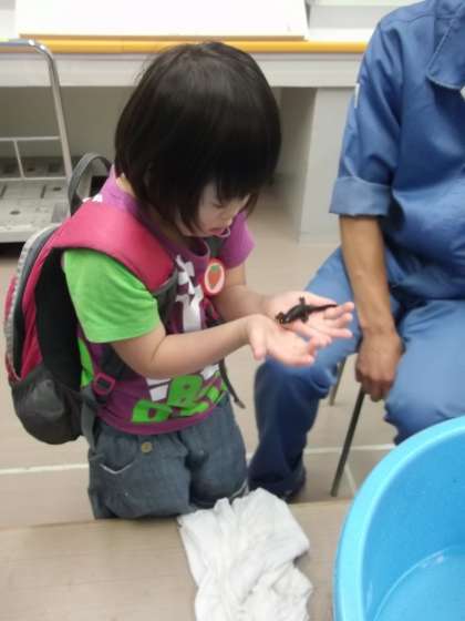 その他にも,イモリやナマズ,ミミズを触ったり,ザリガニ釣りに挑戦したりして,生き物とも触れ合うことができました。空気砲やいろいろな仕組みのおもちゃも楽しかったです。