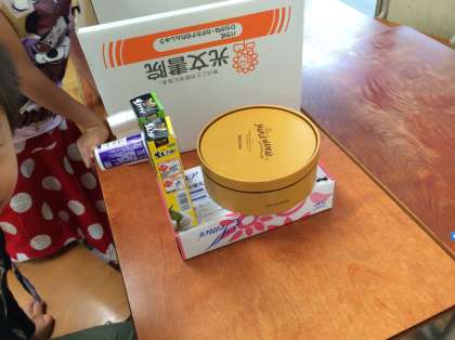 算数の学習で空き箱や缶を使って「いろいろなかたち」の学習を行いました。