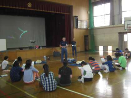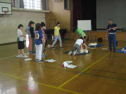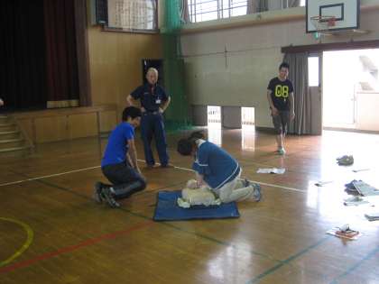 午後3時から体育館で,下京消防署の方に来ていただいて,教職員対象の心肺蘇生法研修会を開きました。