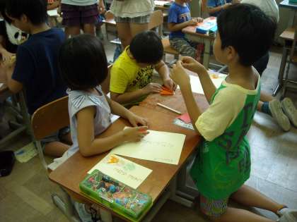 この日は,ピアサポートの初顔合せがありました。まずは,ピアサポートの6年生から名刺をもらい,自己紹介をしてもらいました。次に,6年生に手伝ってもらいながら,自分たちの名刺を作りました。名刺のワンポイントになる飾りは,折り紙で作りました。完成した名刺は,6年生にプレゼントし,無事,名刺交換が終了しました。