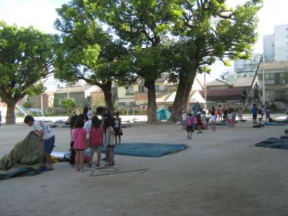 朝食を食べ終わった子どもたちは,自分たちが使ったテントの後片付けをしました。