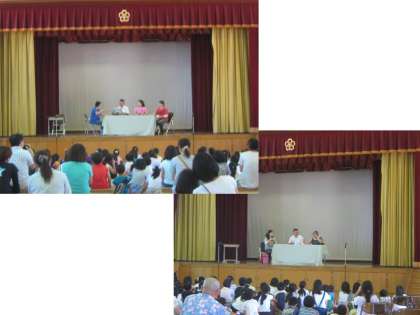 寸劇を使った,日常によくある子育ての場面で,親御さんが気をつけなければいけないことや叱り方のいろいろなパターをもとに子どもたちへの叱り方を考えたらよいことなどを見せていただきました。