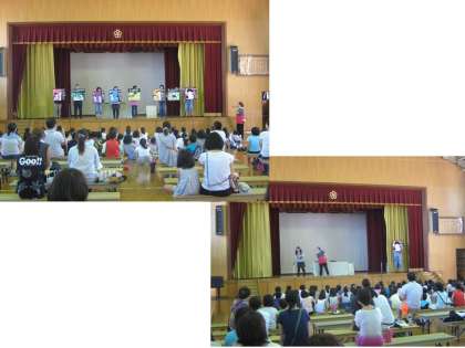 いよいよ『どらりん劇団』による「『親子・子育てあるある』劇場」が,午後1時から体育館で始まりました。
