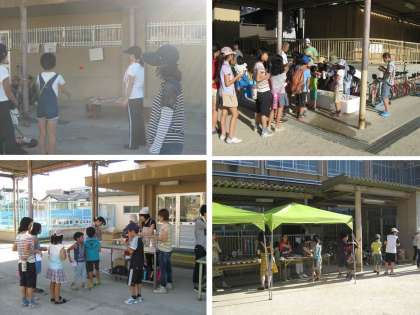 『発砲スチロール崩し』『ミニグランドゴルフ』『ミニボウリング』『輪投げ』『ボール投げ』などのゲームや『フライドポテト』『ジュース』『たこせん』『チャーハン』などの食べ物のブースなどがあり,一つひとつのブースを子どもたちが自分の好きなところからまわります。
