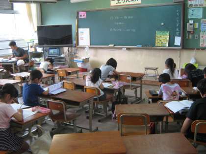 今日から3日間の予定で,9時から10時の1時間を使って,希望者を中心に『夏休み学習会』を行っています。場所は,3組教室と2組教室の予定です。