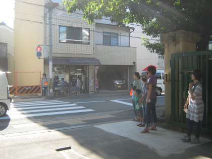 夏休み明けの登校に合わせて,昨日に引き続き今日も,PTAの多くのみなさんが,朝の『声かけ運動』をしてくださいました。