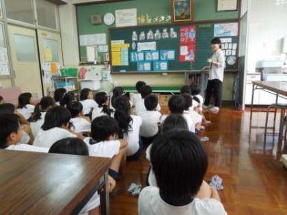 始めに養護の藤本先生から,授業中の姿勢について話がありました。