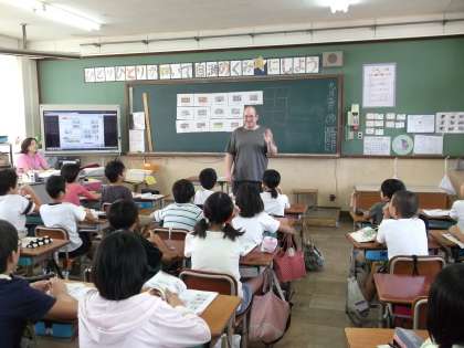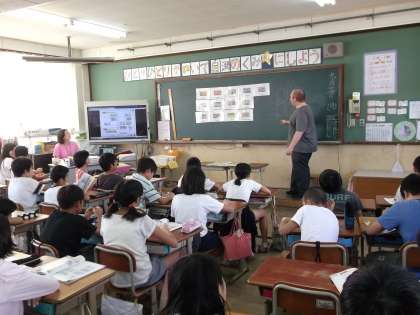 子どもたちはとても楽しそうに,ゲームや歌をALTの先生と一緒にしていました。