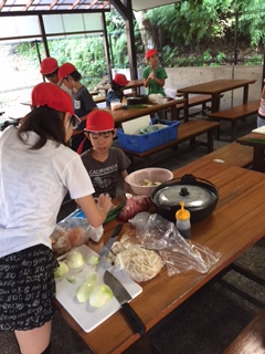 オリエンテーリングが終わると,夕飯の野外炊事の活動が始まりました。