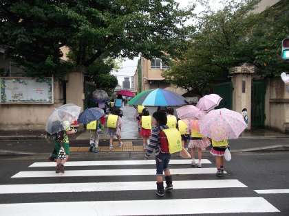昨日からの雨が続き,今朝は雨の中を子どもたちは登校してきました。