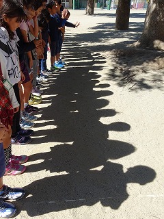 理科の「太陽の動きと地面の様子を調べよう」の学習で,かげふみおにをして,影の不思議見つけをしました。