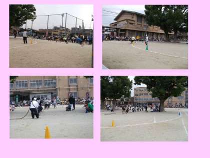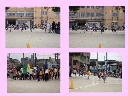 午後の後半もたくさんの競技がありました。愛情測定,ボール送りリレー,班対抗リレー,綱引き,リレーの決勝などです。それぞれの競技に,気持ちのよい汗をかいておられました。