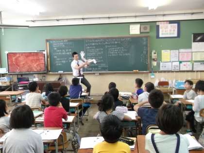 2組では,今日の5時間目の授業で,理科の『私たちの体と運動』という単元の学習をしました。内容は,「腕のつくりと動く仕組み」について,友だちと調べたり話合ったりして,自分たちの腕を使って,学習問題を解決していきました。
